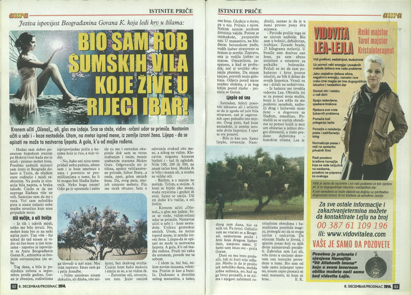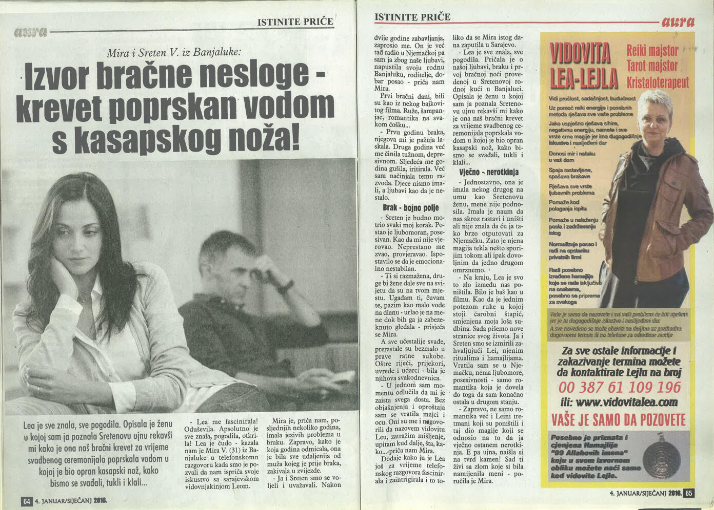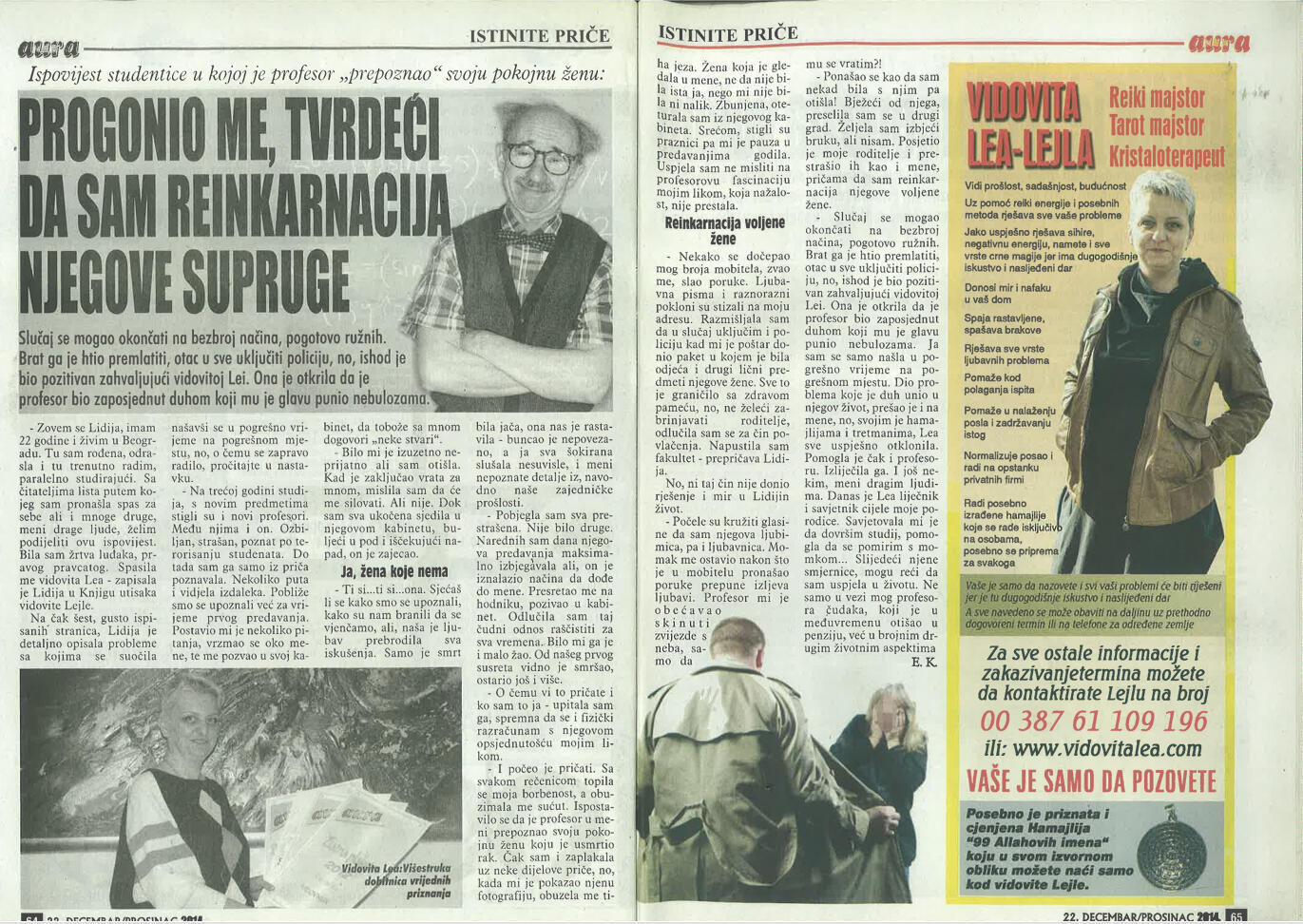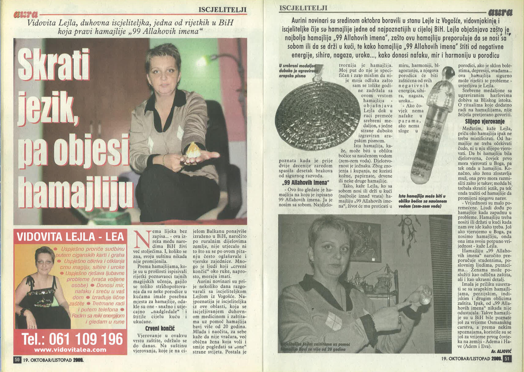 Uspješno proričem prošlost, sadašnjost i budućnost uz pomoć Tarot karata, graha, runa i viska, oslanjajući se na dugogodišnje iskustvo i snažan intuitivni uvid.Otkrivam prisustvo negativne energije, sihira i crne magije, te ih uklanjam pomoću urođenog dara, Reiki energije i rada s visokom, pozitivnom vibracijom.Uspješno skidam sihire i crnu magiju na daljinu, bez obzira na to gdje se nalazite, uz potpunu posvećenost i diskreciju.Svojim glasom i energetskim djelovanjem unosim mir, sklad i zaštitu u dom, pomažući da se narušena energija vrati u ravnotežu.Rješavam sve vrste ljubavnih problema – pomažem u pronalaženju puta srca, razrješavanju emotivnih blokada i vraćanju voljene osobe, ali isključivo onda kada između vas postoji istinska sudbinska povezanost.