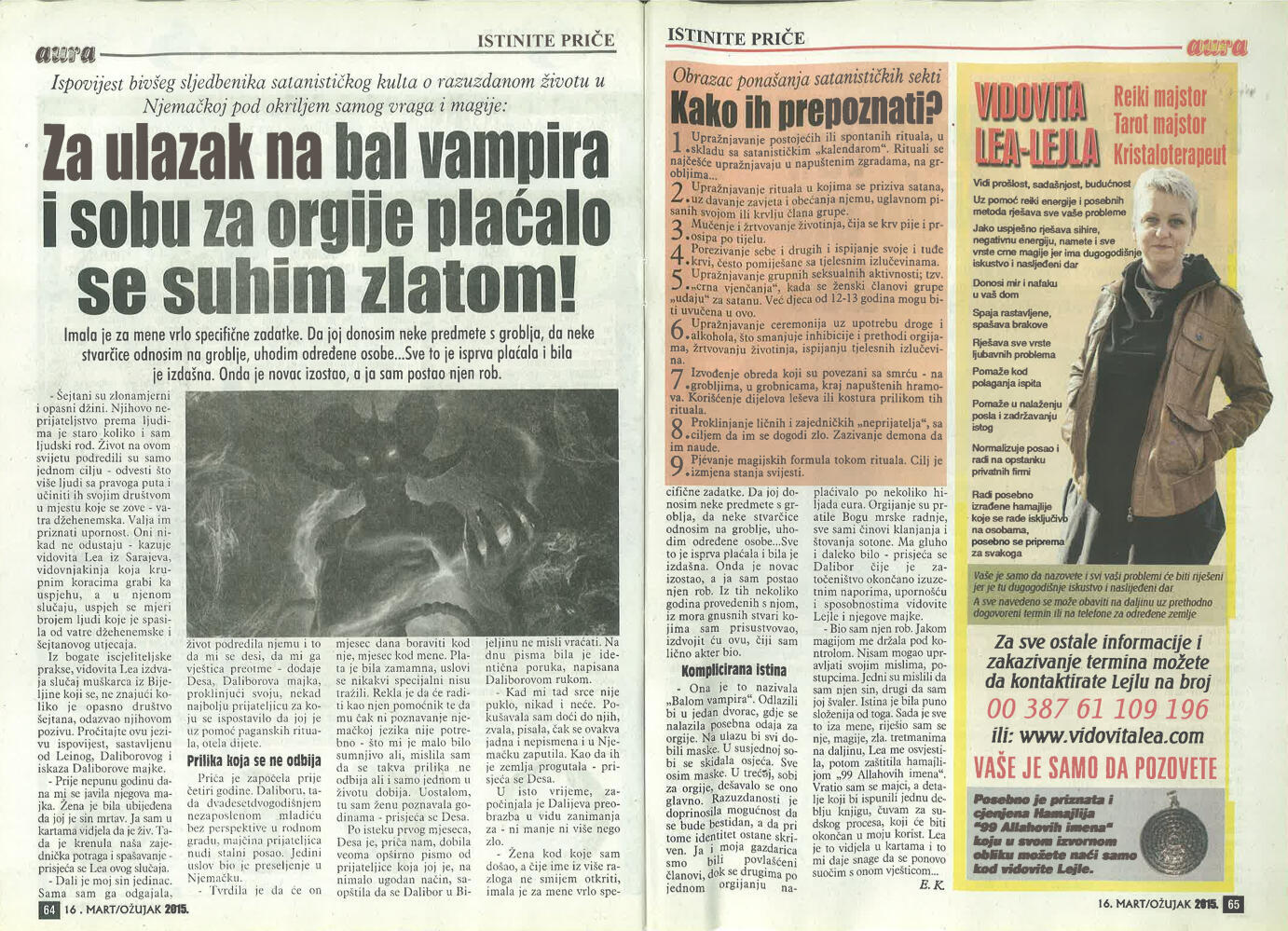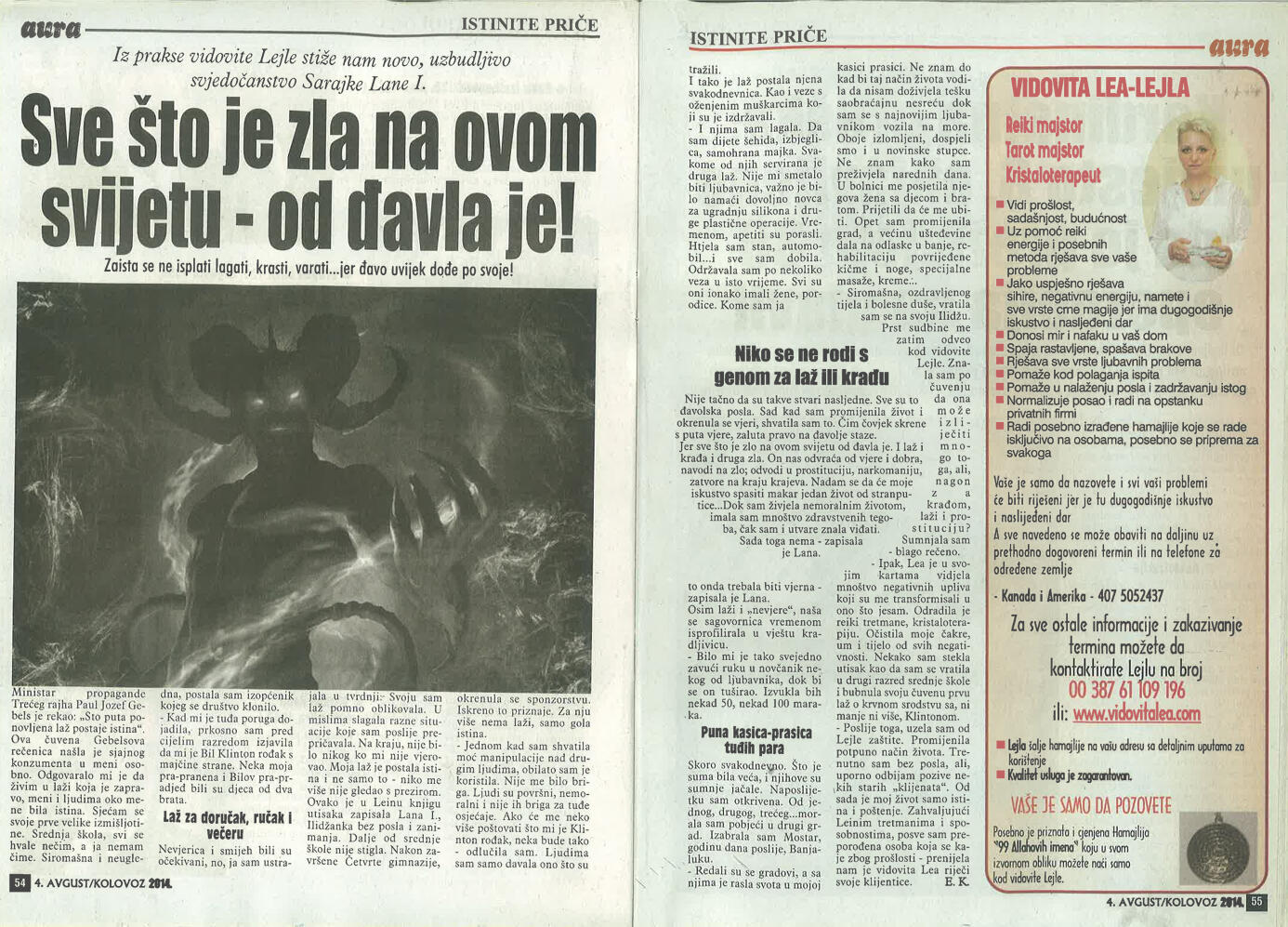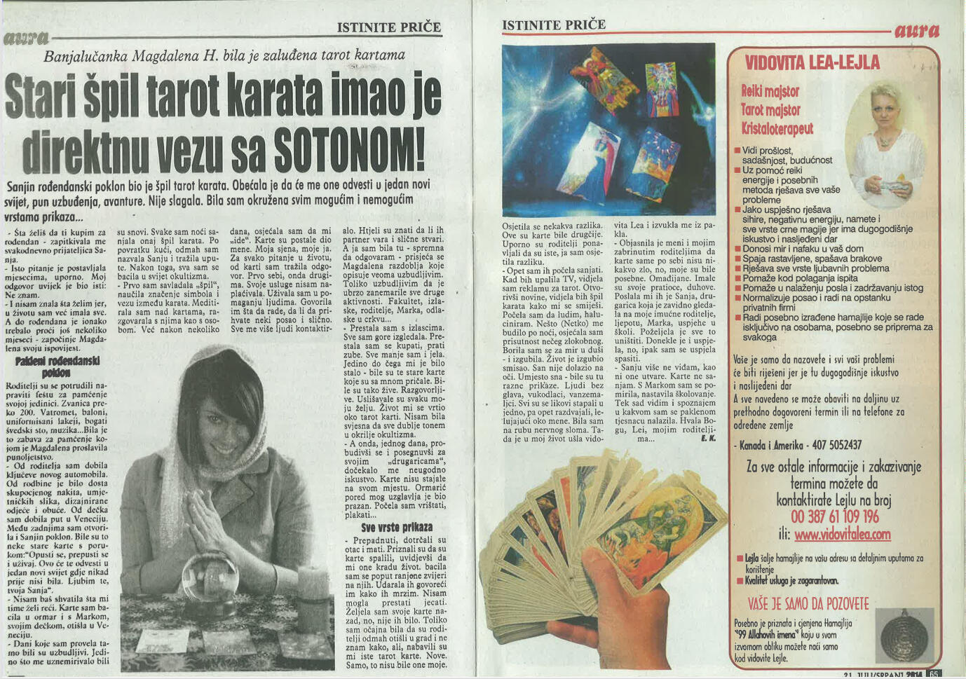 Tarot savjetovanje telefonom i online dostupno je klijentima širom Balkana i dijaspore. Vidovita Lea (Lejla) pruža duhovne uvide i savjetovanje osobama iz Bosne, Hrvatske i Crne Gore, kao i klijentima u Njemačkoj, Austriji i drugim evropskim zemljama. Usluge uključuju gledanje u tarot i ciganske karte, gledanje u grah, izradu personalnih hamajlija, duhovno čišćenje, uklanjanje negativne energije, pomoć kod sihira i zapisa, zaštitu od crne magije, rad sa kristalima, kao i Reiki tretmane i energetsko savjetovanje.