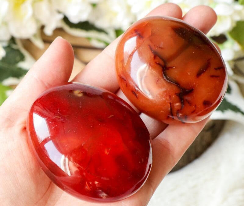 Fizičko zdravlje i vitalnostTradicionalno se vjeruje da karneol stimuliše metabolizam i aktivira korijensku (zemaljsku) čakru, povećavajući fizičku energiju i izdržljivost. Posebno se povezuje sa zdravljem ženskih reproduktivnih organa i povećanjem plodnosti. Također pomaže u regulaciji tjelesnih tečnosti i osigurava dobro snabdijevanje organa i tkiva krvlju.